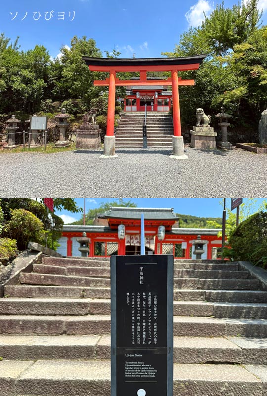 下・石段の前には「菟道稚郎子」と「宇治神社」の由来が書かれていた。