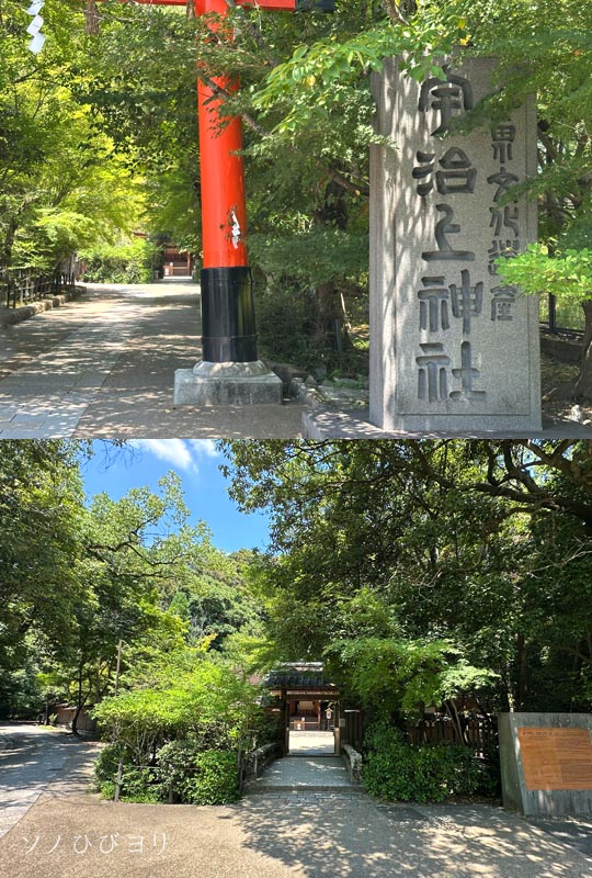「宇治神社」と二社一体の「宇治上神社」、その祭神は左殿「菟道稚郎子」、中殿「一五代・応神天皇」、右殿「一六代・仁徳天皇」の三柱。また、「応神天皇」の離宮「桐原日桁宮跡」であり、皇子の「菟道稚郎子」の宮居跡とも伝えられ、「菟道稚郎子」の薨御後に御神霊を祀ったのが始まりである。