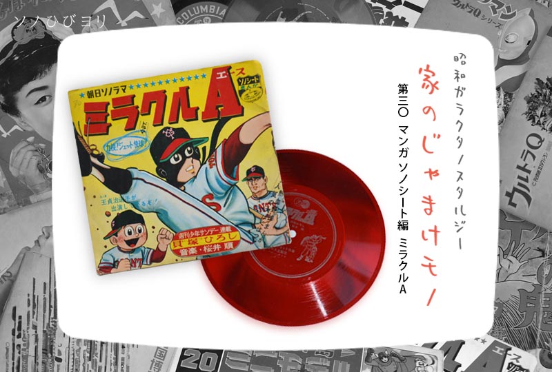 週刊少年サンデーに昭和三九年から昭和四一年にかけて連載された。このソノシートの販売は昭和四〇年で定価280円、この「ミラクルA」は、まぁまぁ高価だ!
