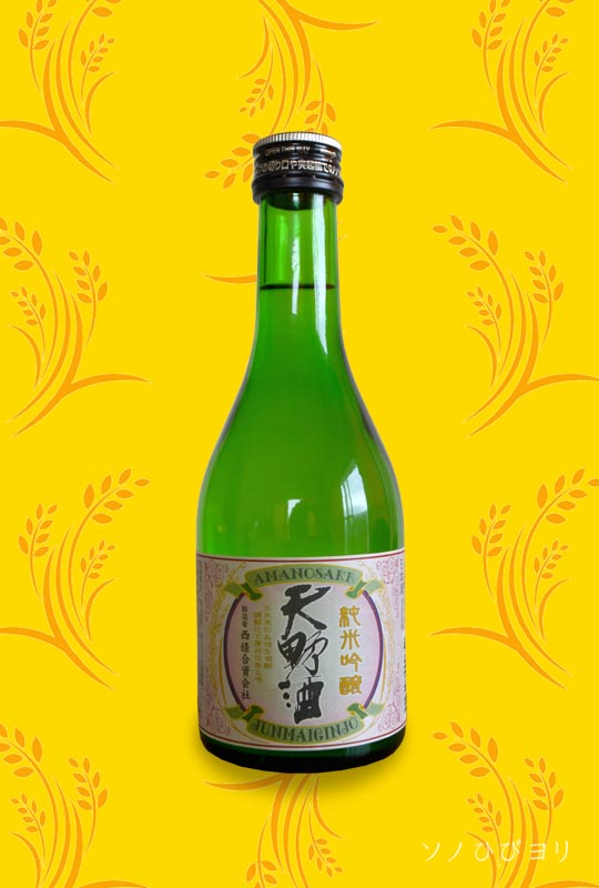 天野酒・純米吟醸の二合瓶。荷物があって酒蔵では買えず、大阪土産屋さんで購入。