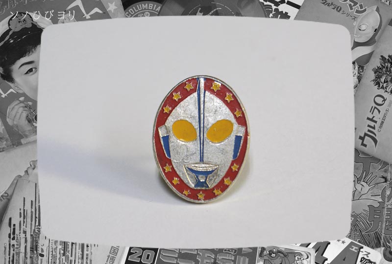 ウルトラセブンのバッヂ。「帰ってきたウルトラマン」で数度? 共演していました。