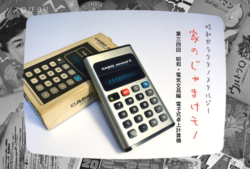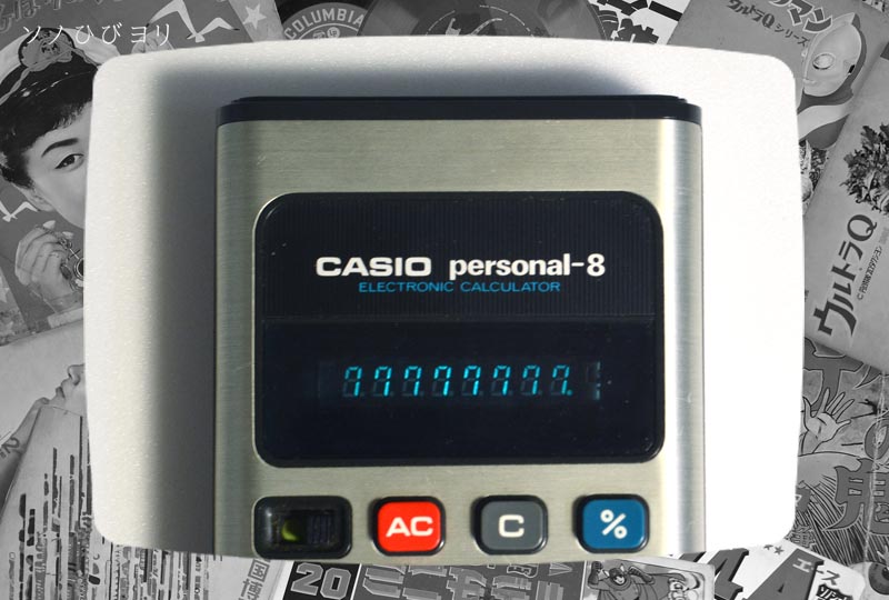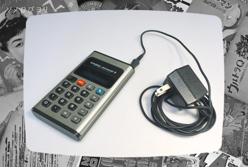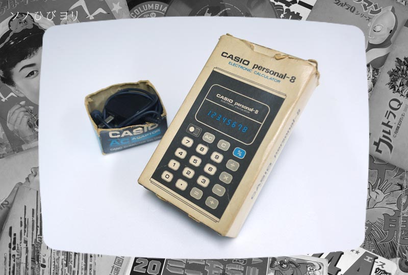 当時、電卓マーケットのど真ん中にいた「カシオ」の「CASIO personal-8」。この「CASIO personal-8」のスペックを調べると、昭和50年(前後)の販売で本体価格は7500円(消費税はありませんよ・笑)、別売りのACアダプターが1200円!! 昭和50年の大卒の初任給が約9万円、とするととんでもない定価です! こんな高級なモノを買っていたなんて知らなかった・・・。
