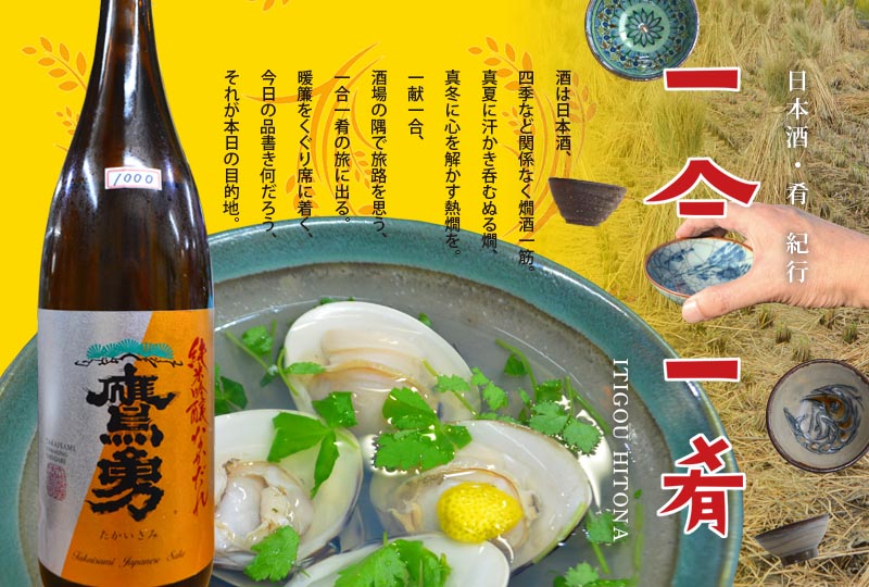 華やかでめでたいイメージの「鷹勇 純米吟醸 なかだれ」に合わした肴は、大粒の「はまぐり」の酒蒸し。