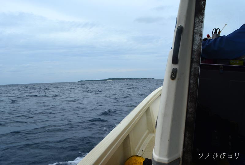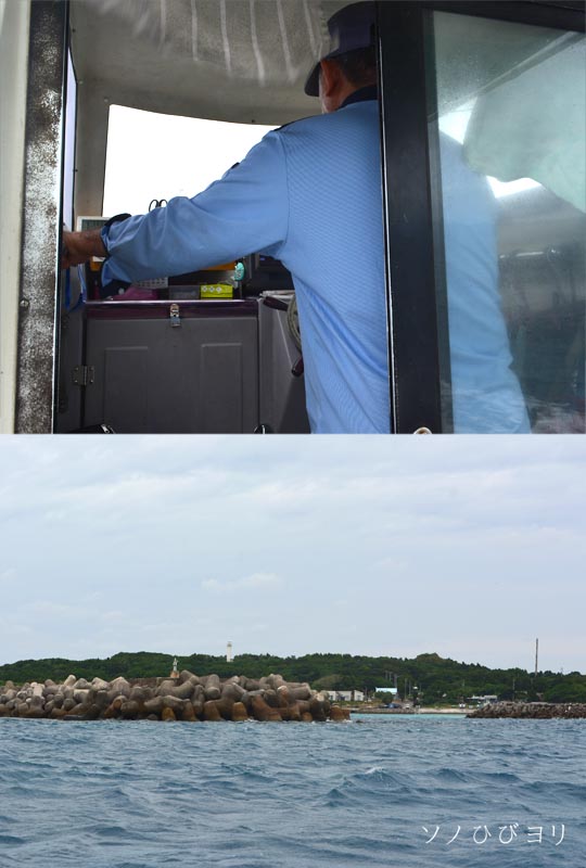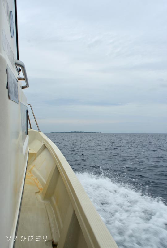 11年ぶりの再会だけど勤務中なので挨拶も最小限にとどめ(また、あとで・笑)、船に荷を乗せすぐに出航の準備にかかる。港内の波は静かだけれど、外に出れば相当うねりがあるみたい、濡れないように船の真ん中付近に腰掛け出航~。