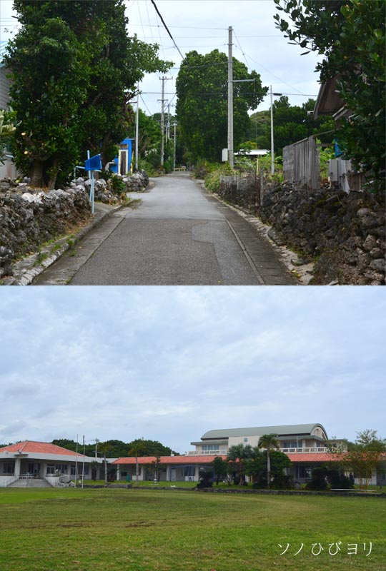 下・鳩間小中学校、小中合わせて6名の小さな学校。校舎は立派です。