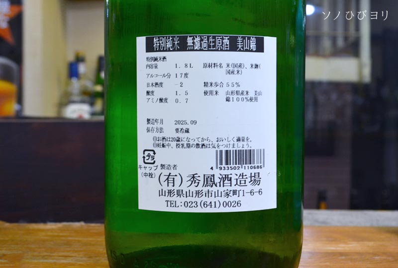 本日は3年ぶり「秀鳳酒造場」さんの看板銘柄を、酒のムラタ屋さんにて一献です。それは「秀鳳 特別純米 無濾過生原酒 美山錦」、それも無濾過生原酒なのですよ! 地元で長きに亘り栽培されてきた「美山錦」の味わいを伝えるために、無濾過としているようです。