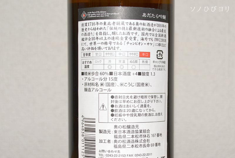醸造アルコール入りなのに「ひとクラス上」のおいしさを造る「奥の松酒造」さん凄いです~。
