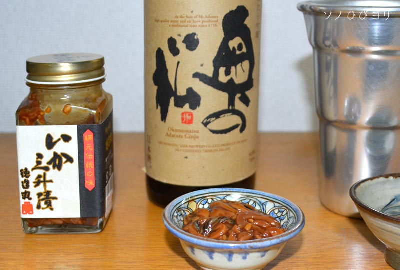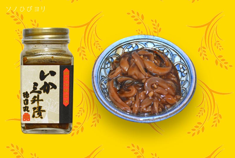 本日のお酒に合わすのは、伊豆の網元料理店「徳造丸」さんが製造販売している「いか三升漬」です。一見すると「塩辛」に見えるのですが、違うのですよ! まず塩辛に絶対必要な「ワタ」や「ゲソ」は使用していません、だから癖が全くないのです。塩分も控えめで、ほんの少しの辛味のパンチ! 日本酒の風味を邪魔しない奥ゆかしさのある珍味です。ベースは醤油、その中に米こうじのやさしい甘み、三升漬らしい唐辛子のピリッと感が加わり、ご飯の友にもお酒の肴にも最高の珍味です!